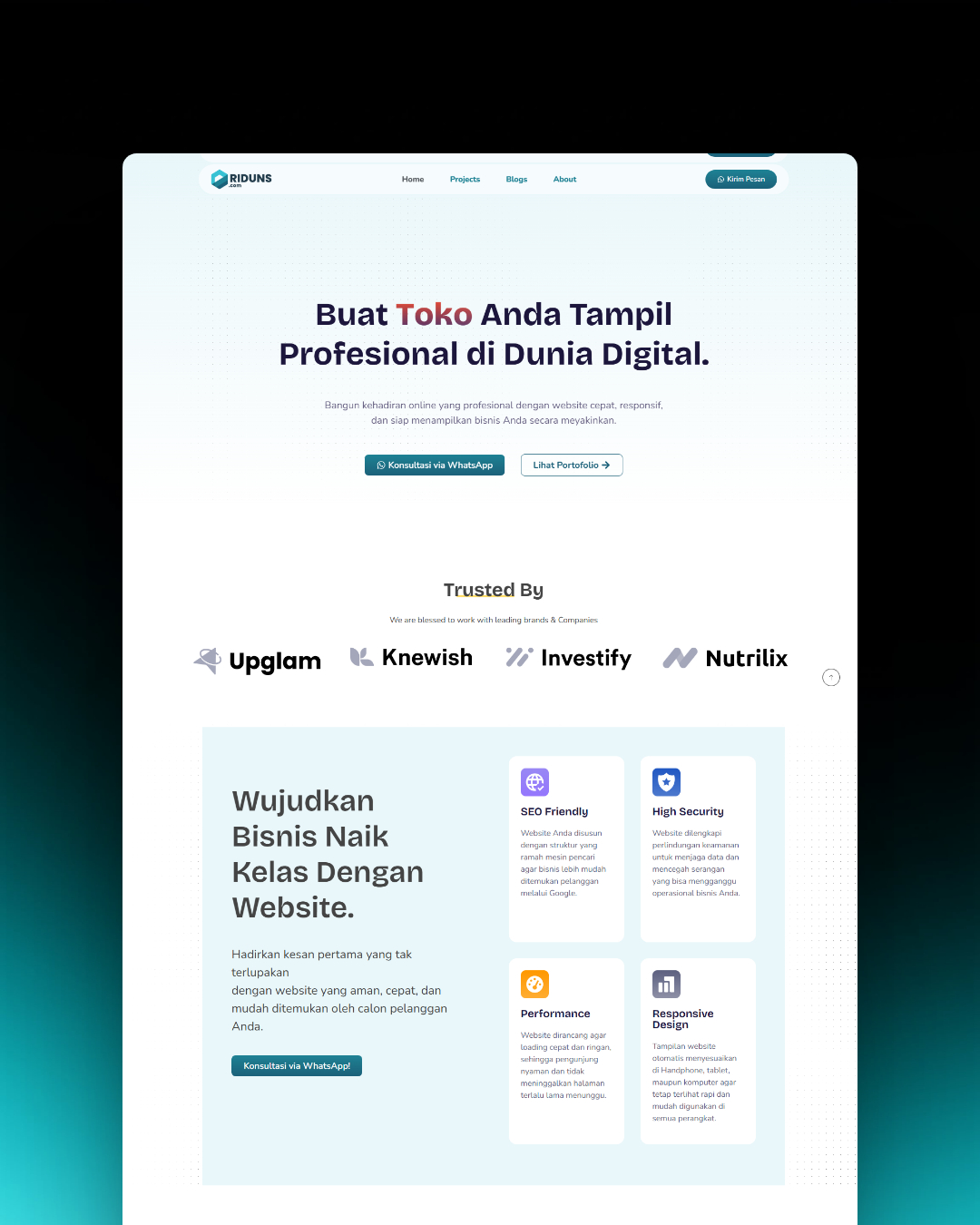 Website bukan sekadar tampilan visual, melainkan instrumen fungsional yang tepat guna, sekaligus media pemasaran dan alat analisis bagi pertumbuhan bisnis Anda.